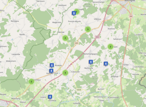 Suivez le lien pour découvrir toutes les balades répertoriées sur le site officiel de la commune de Vaux-sur-Sûre. Sur la page vous aurez la possibilité de choisir une balade et d’en avoir le tracé précis sur www.cirkwi.com. https://www.vaux-sur-sure.be/bouger-decouvrir/tourisme/a-faire/promenades
